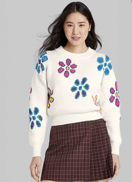 Women's Crewneck Floral Pullover Sweater Small Wild Fable NEW